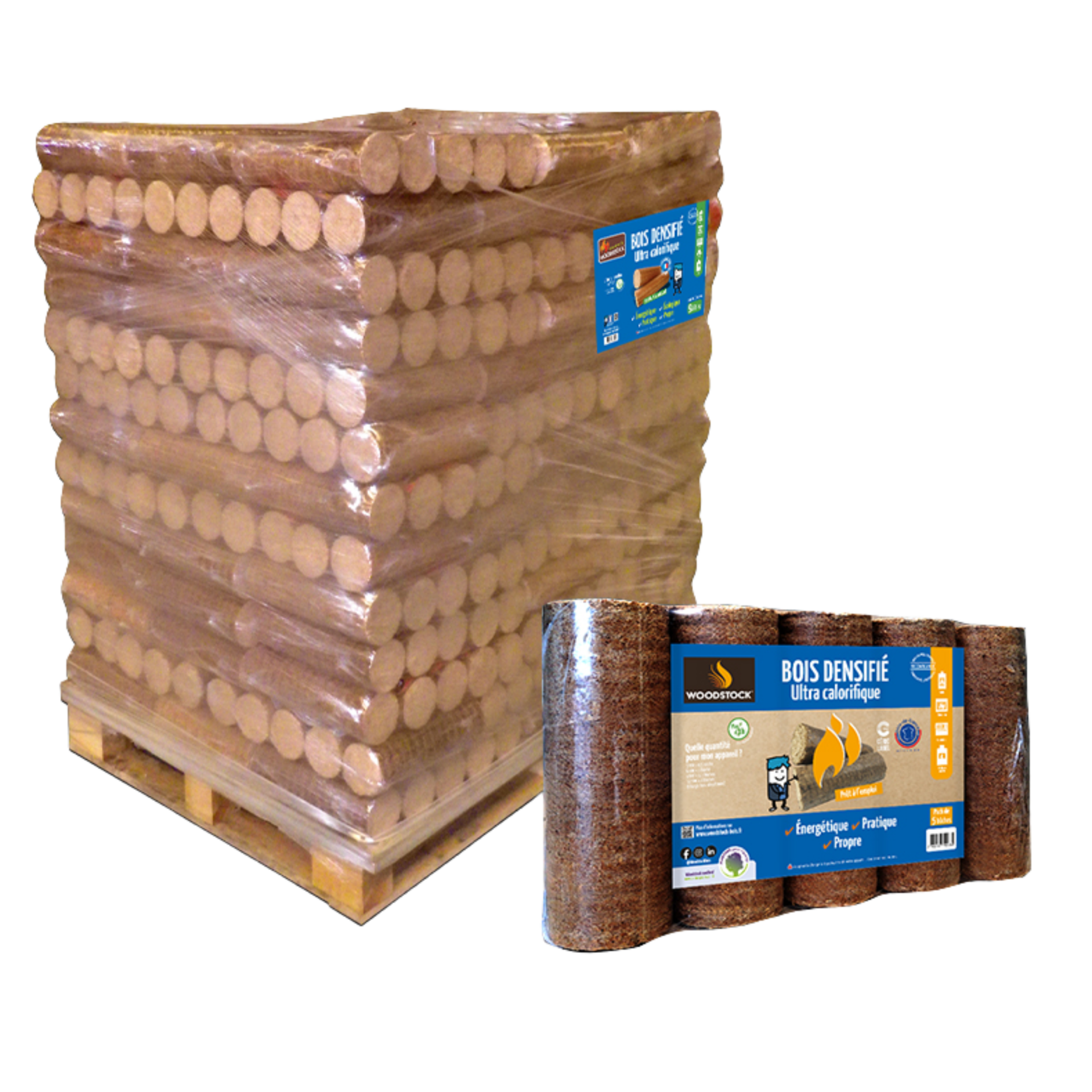 - Équivalence : 1 bûche densifiée = 3-4 bûches traditionnelles